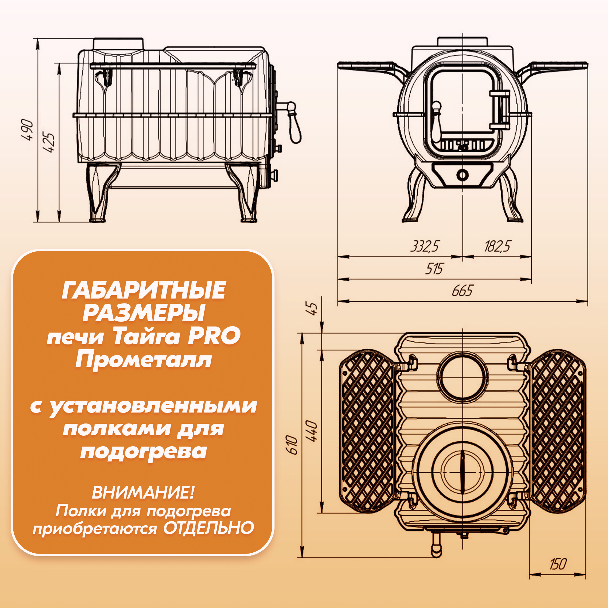 Печь отопительная Прометалл «Тайга» PRO - эффективная, функциональная, качественная и надежная чугунная печь с высоким КПД 80% по привлекательной цене.